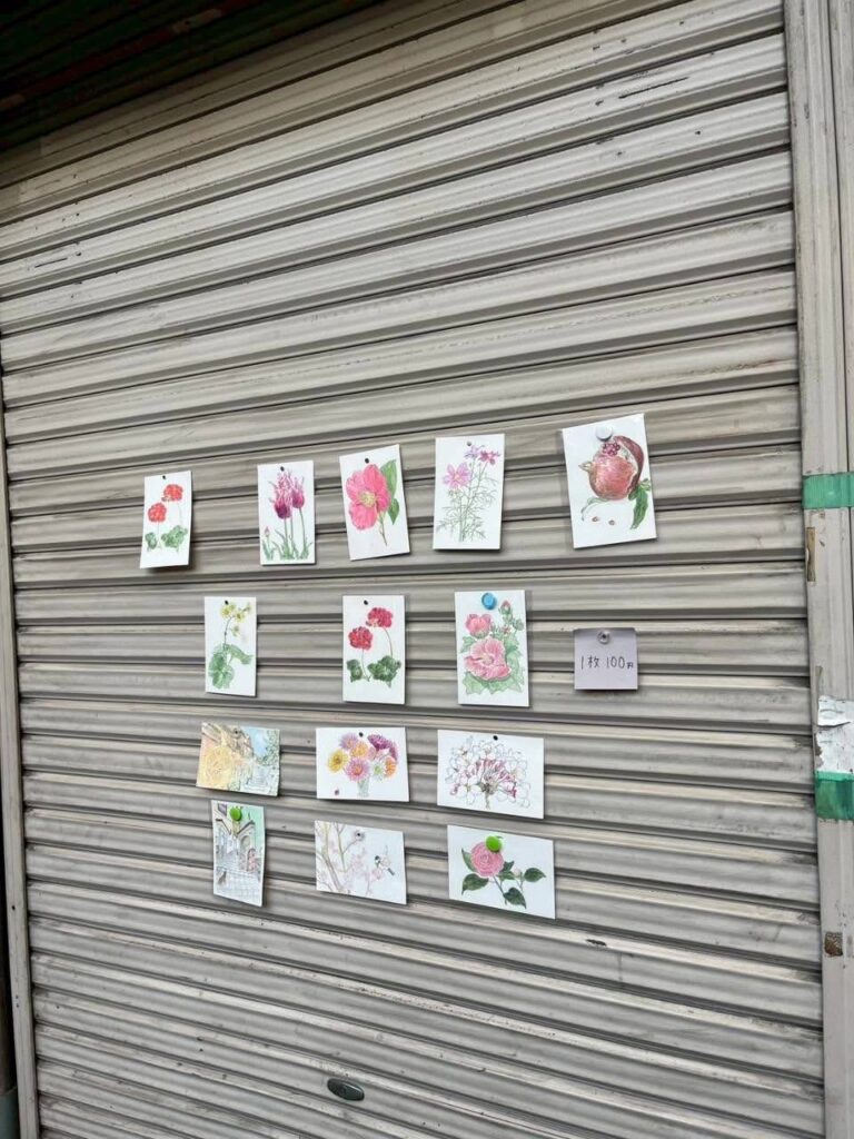 閉業した喫茶店のシャッターでは