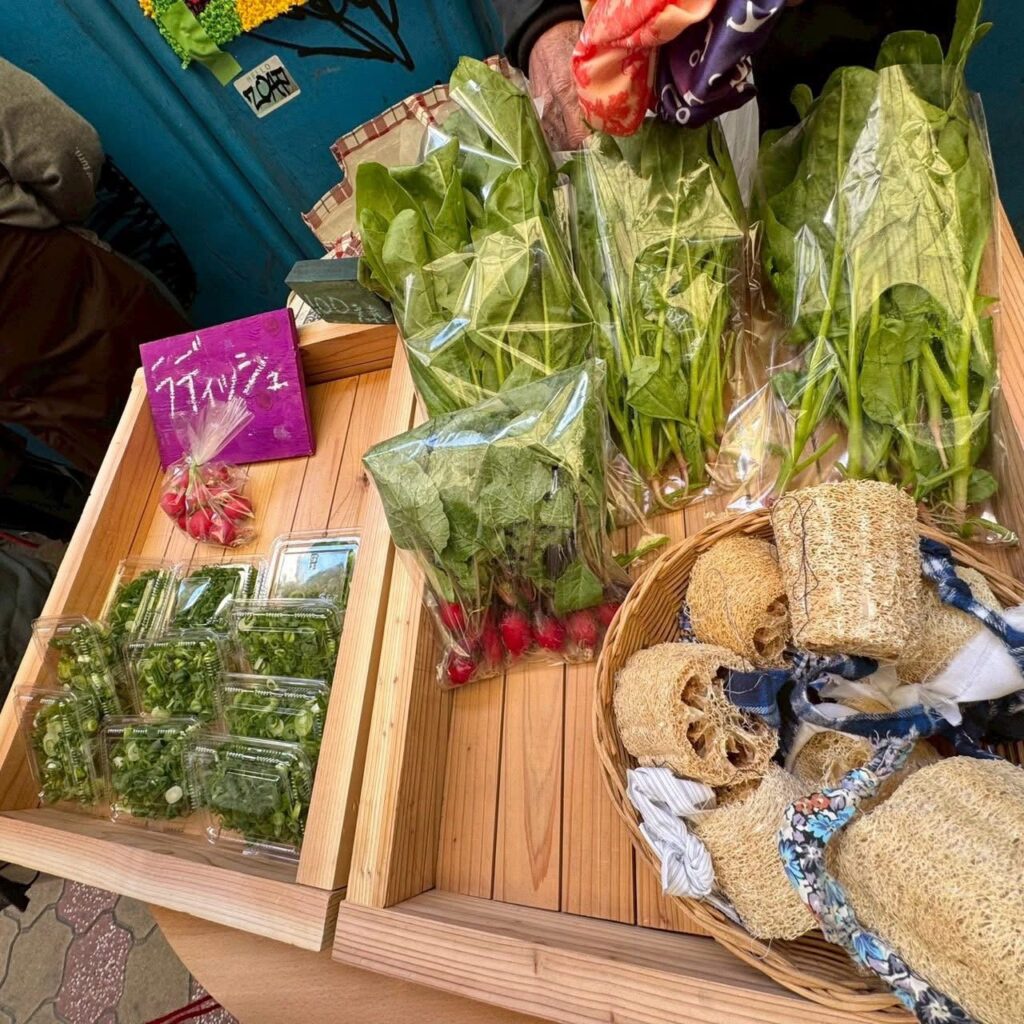 手作りシュシュとヘチマたわしを販売したり